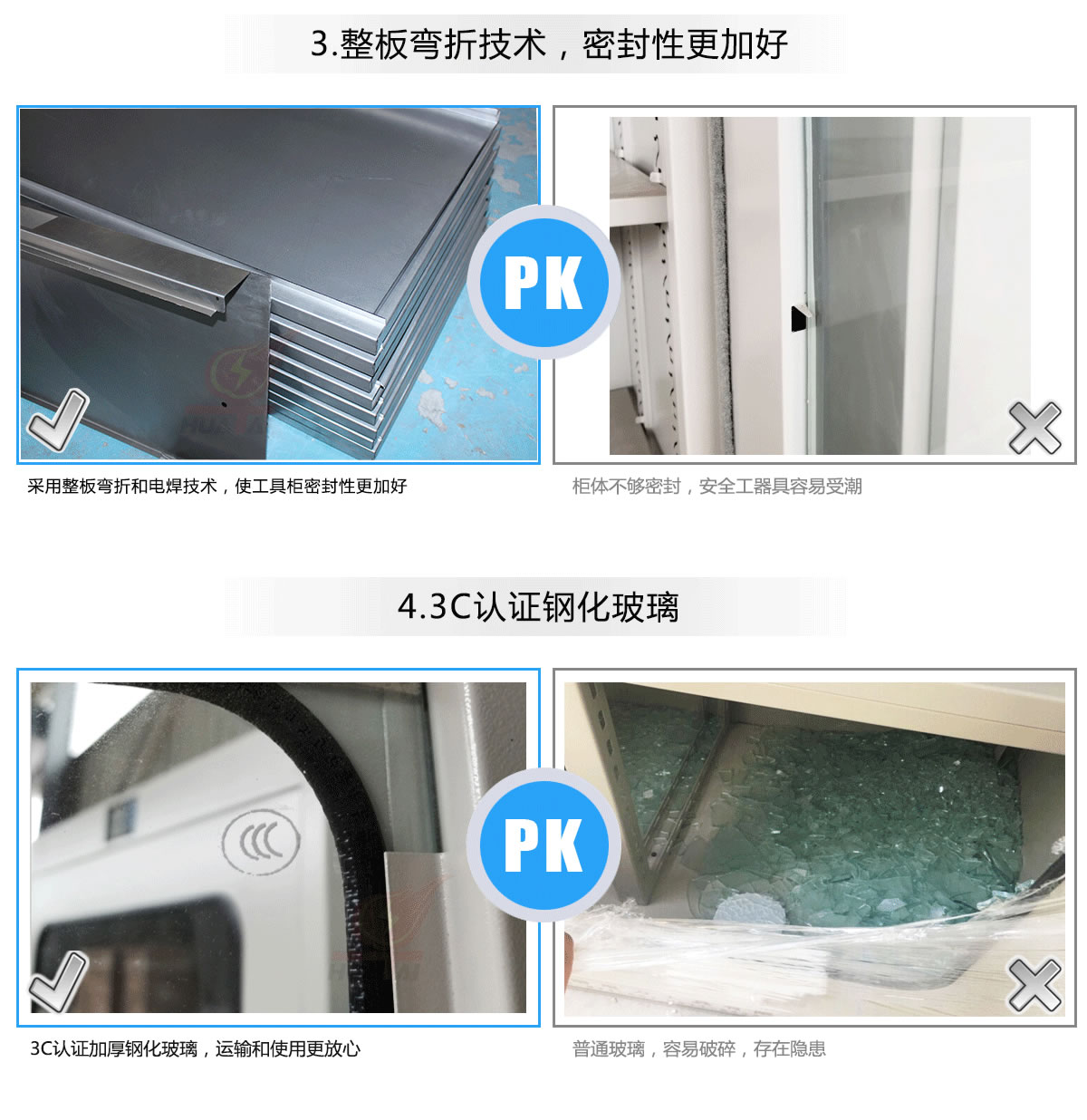 1.  可同時存放絕緣桿、驗電器、接地線、絕緣手套、絕緣靴、安全帶、防毒面具、絕緣繩、絕緣擋板、屏蔽服等工具用品、做到綜合利用。