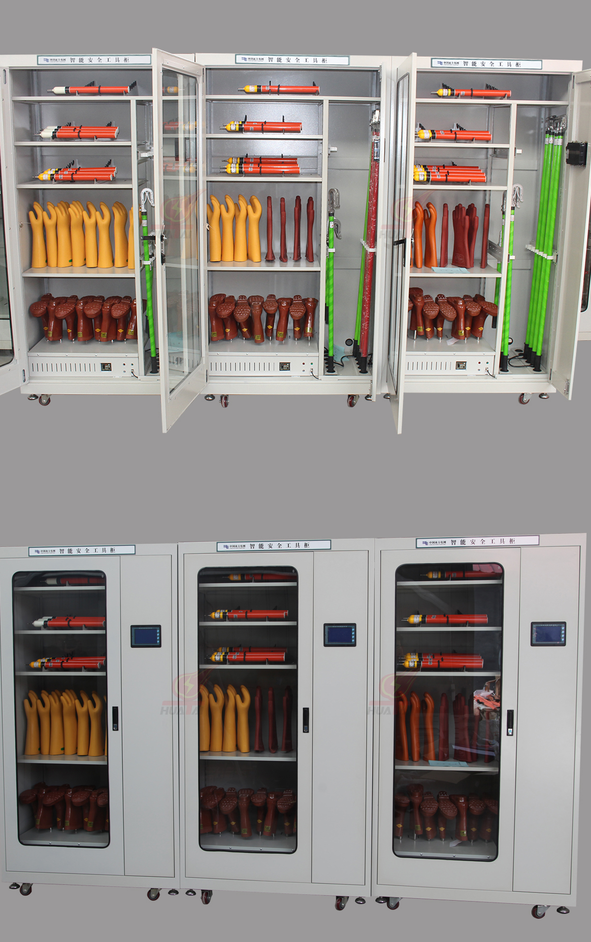 7、 智能安全工具柜-具有對絕緣工具進行標識和分類管理的功能:通過標識和分類避免拿錯不同型號的絕緣工具造成安全事故,能對不同電壓絕緣工具進行有效的管理;智能除濕安全工具柜就選華泰絕緣安全工器具柜!