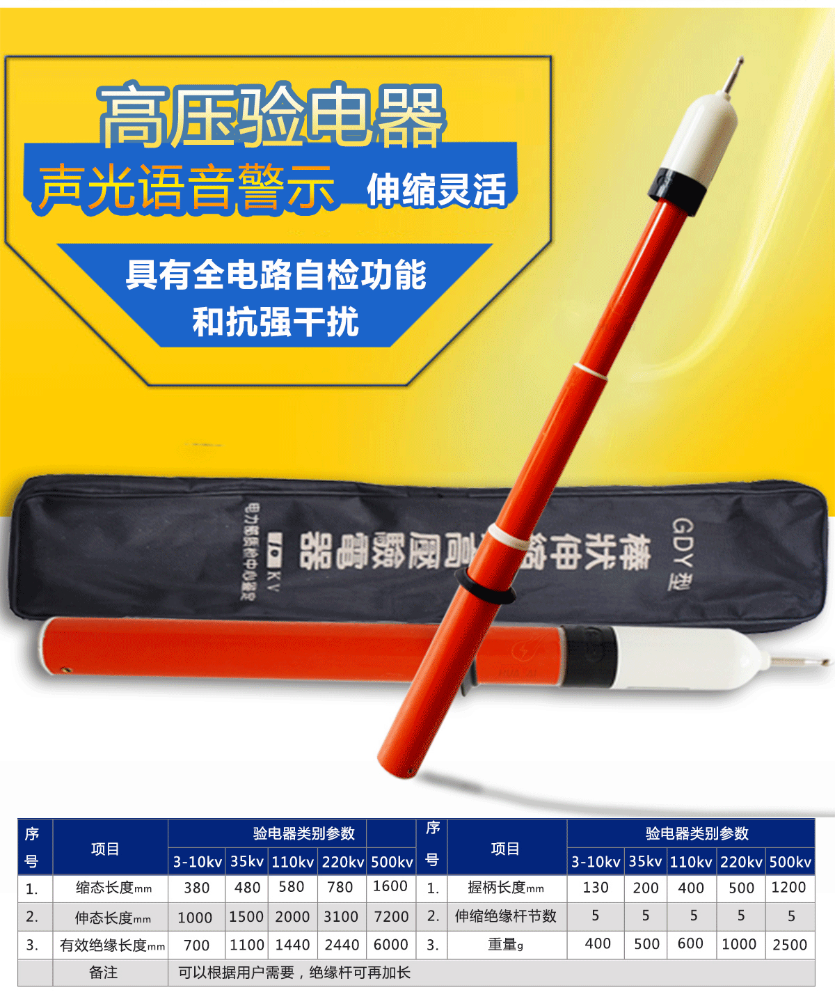 | 防雨驗電器 | GDY-10KV、GDY-35KV、GDY-66KV GDY-110KV、GDY-220KV、GDY-500KV | 支 | |