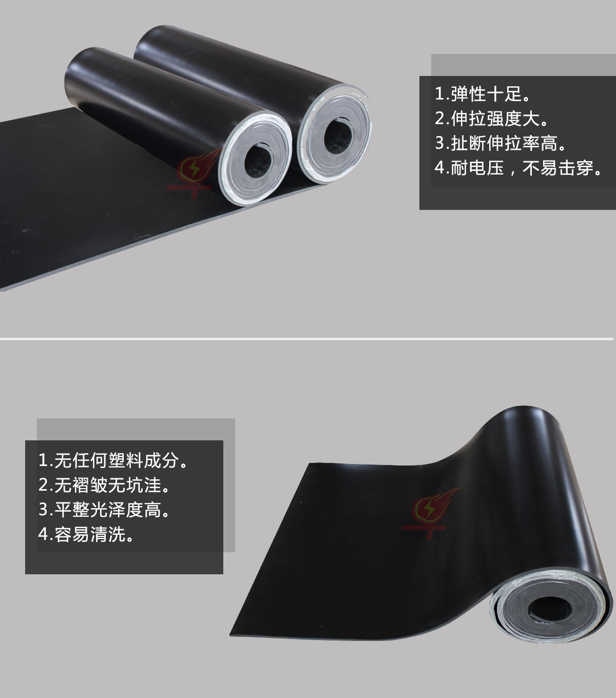 華泰電力絕緣膠墊無異味,色澤好,比重及耐壓等級完全符合國家標準,供貨同時提供正規檢測報告、合格證等證明材料,絕緣性能良好,無氣泡,無凹坑,表面光滑整潔干凈。