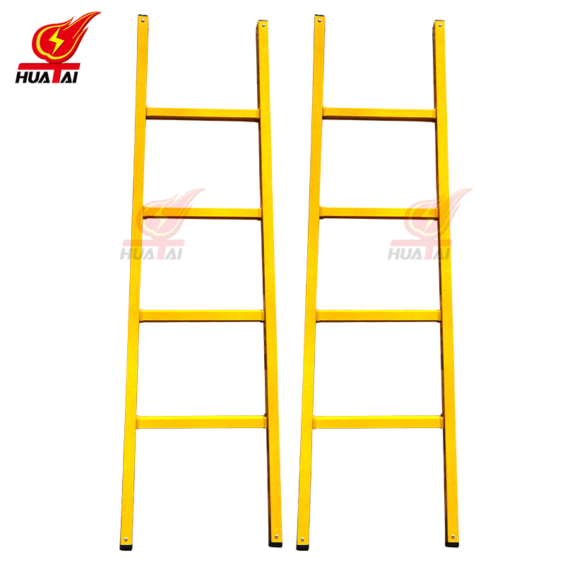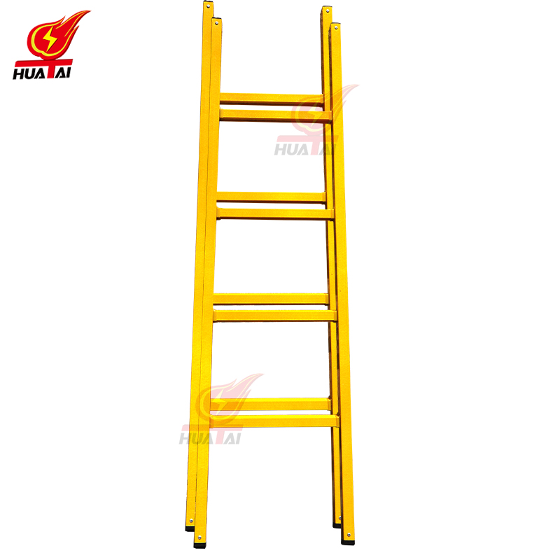 絕緣梯采不飽和樹脂和玻璃纖維聚合拉擠制造工藝,材質(zhì)選用環(huán)氧樹脂結(jié)合銷棒技術(shù),軸類鋼制件表面有防護(hù)鍍層;絕緣層壓類材料制件加工表面用了絕緣漆進(jìn)行處理。