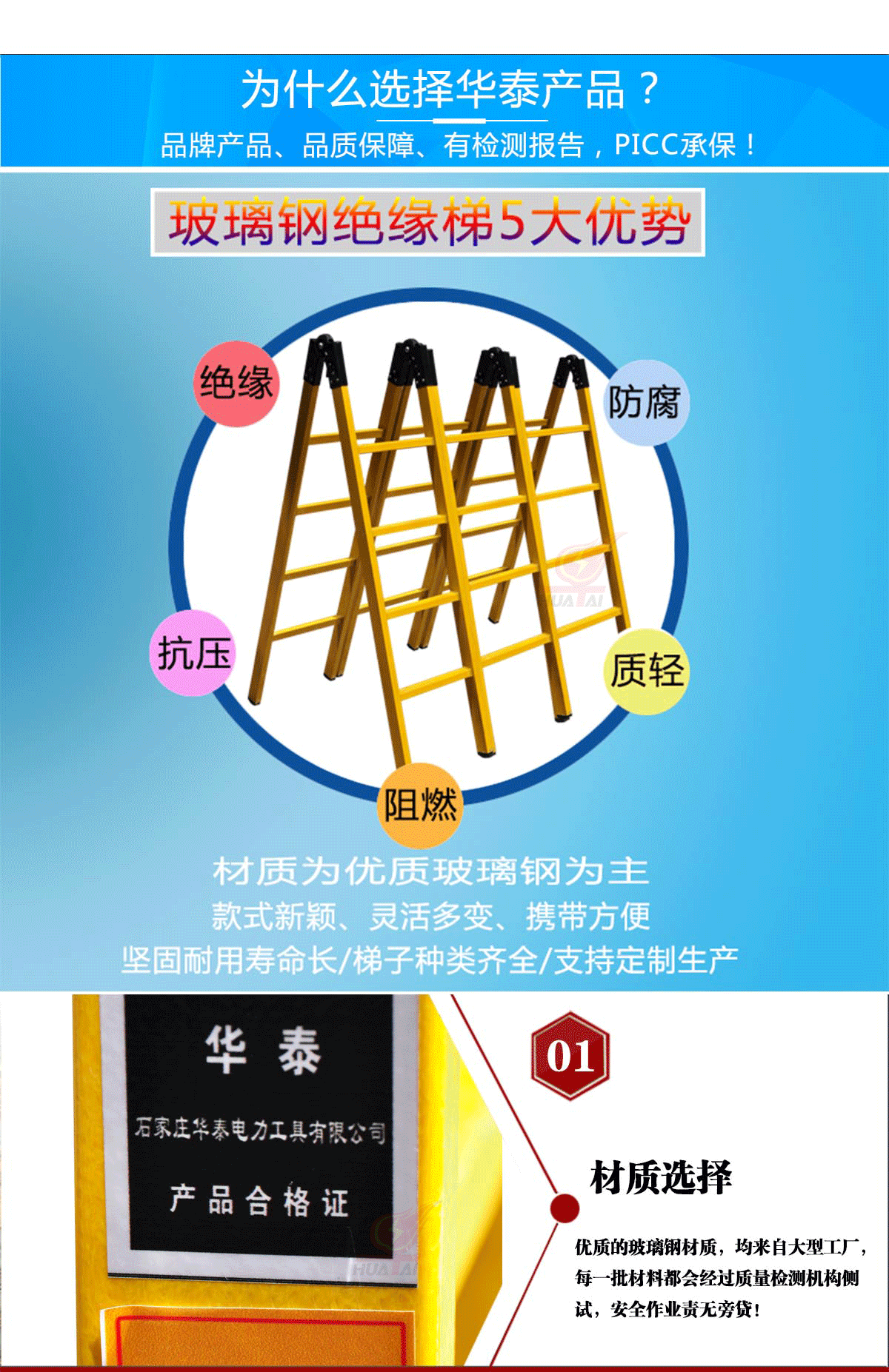 防誤操作引起的觸電事故。經過嚴格測試檢驗的玻璃鋼梯還可以用做高壓帶電作業用梯。
