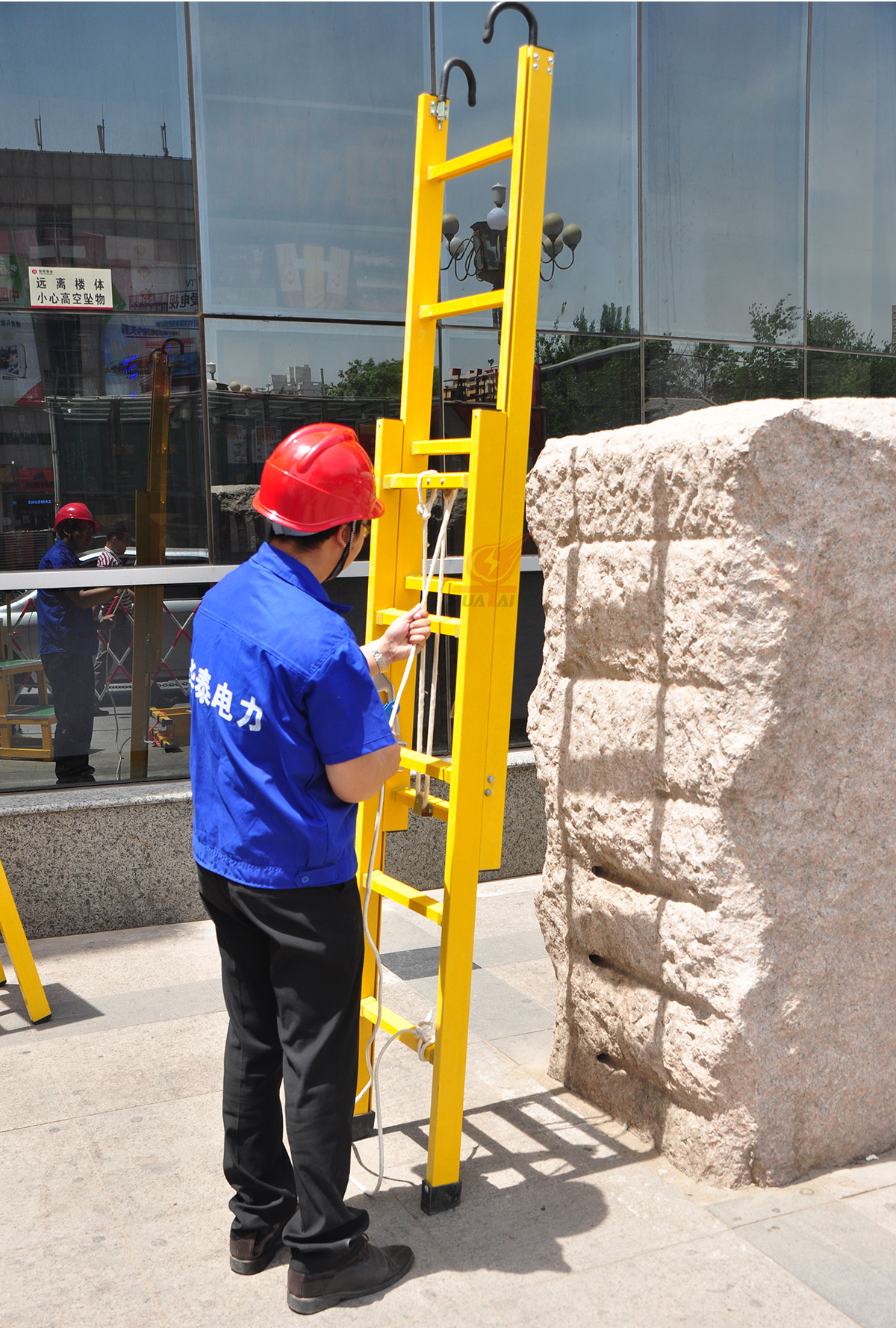 2、 使用絕緣梯時應選擇堅硬、平整的地面,以防止側歪發生危險。
