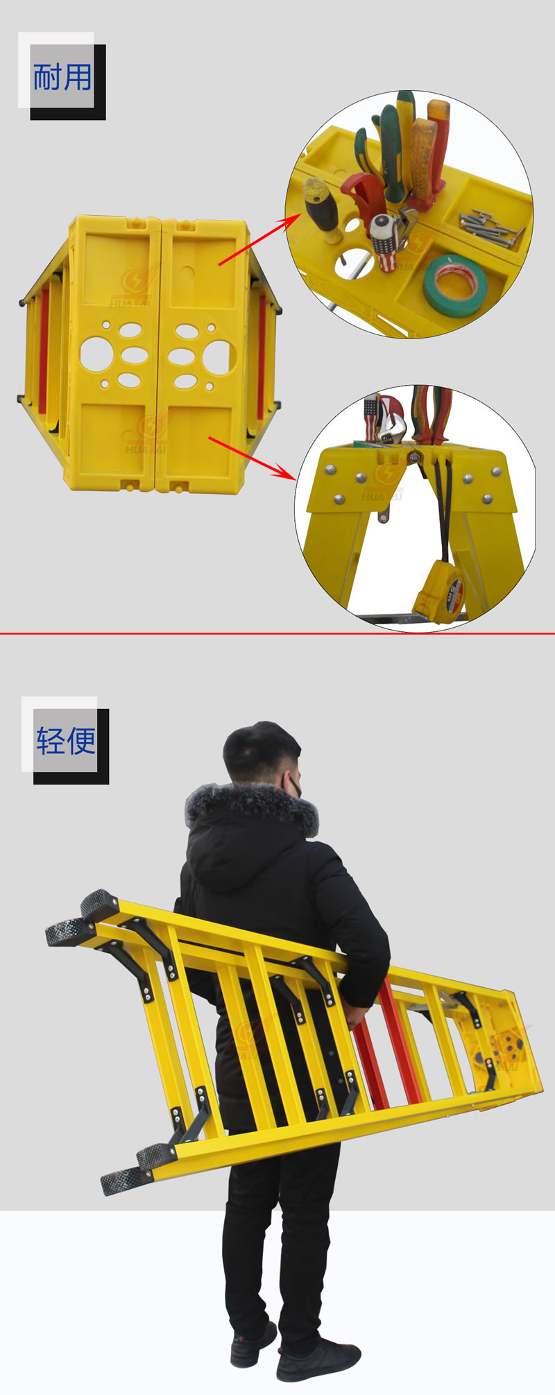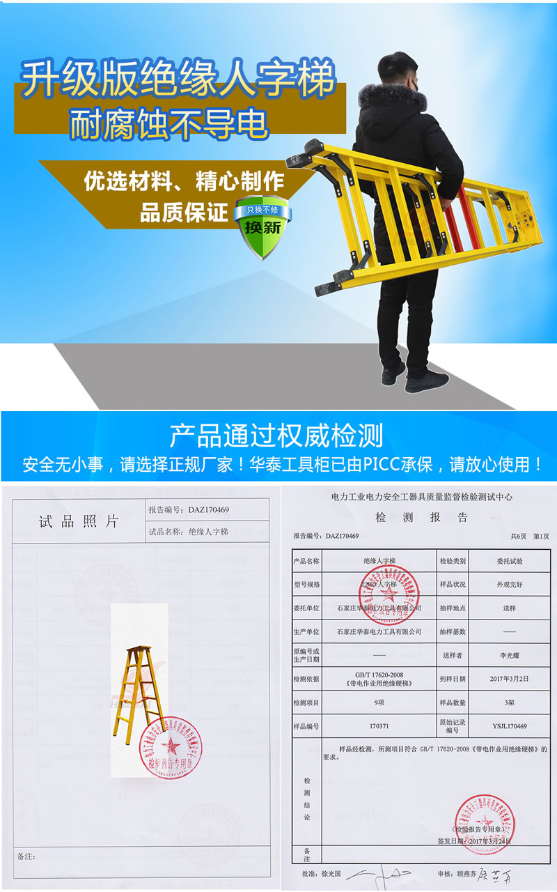 (1)升級版玻璃鋼絕緣人字梯不導電,外觀新穎,美觀大方