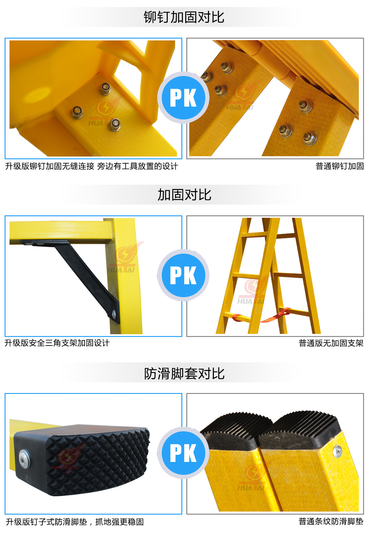 升級版玻璃鋼絕緣人字梯材質: 由不飽和樹脂和玻璃纖維混合而成的絕緣玻璃鋼