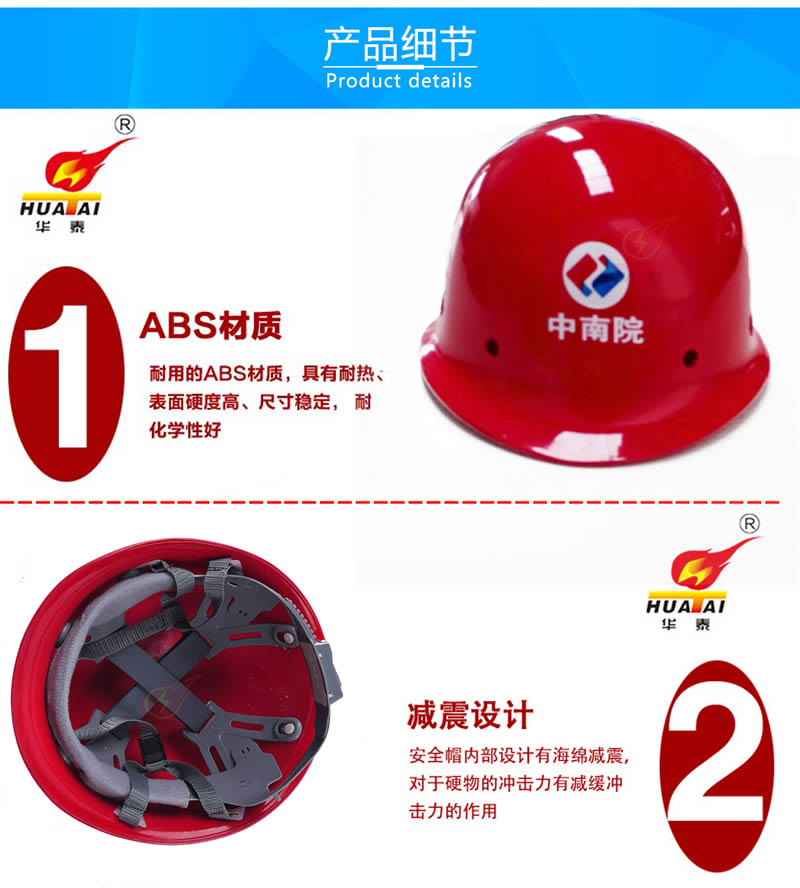 1.緩沖減震作用:帽殼與帽襯之間有25~50mm的間隙,當物體打擊安全帽時,帽殼不因受力變形而直接影響到頭頂部。