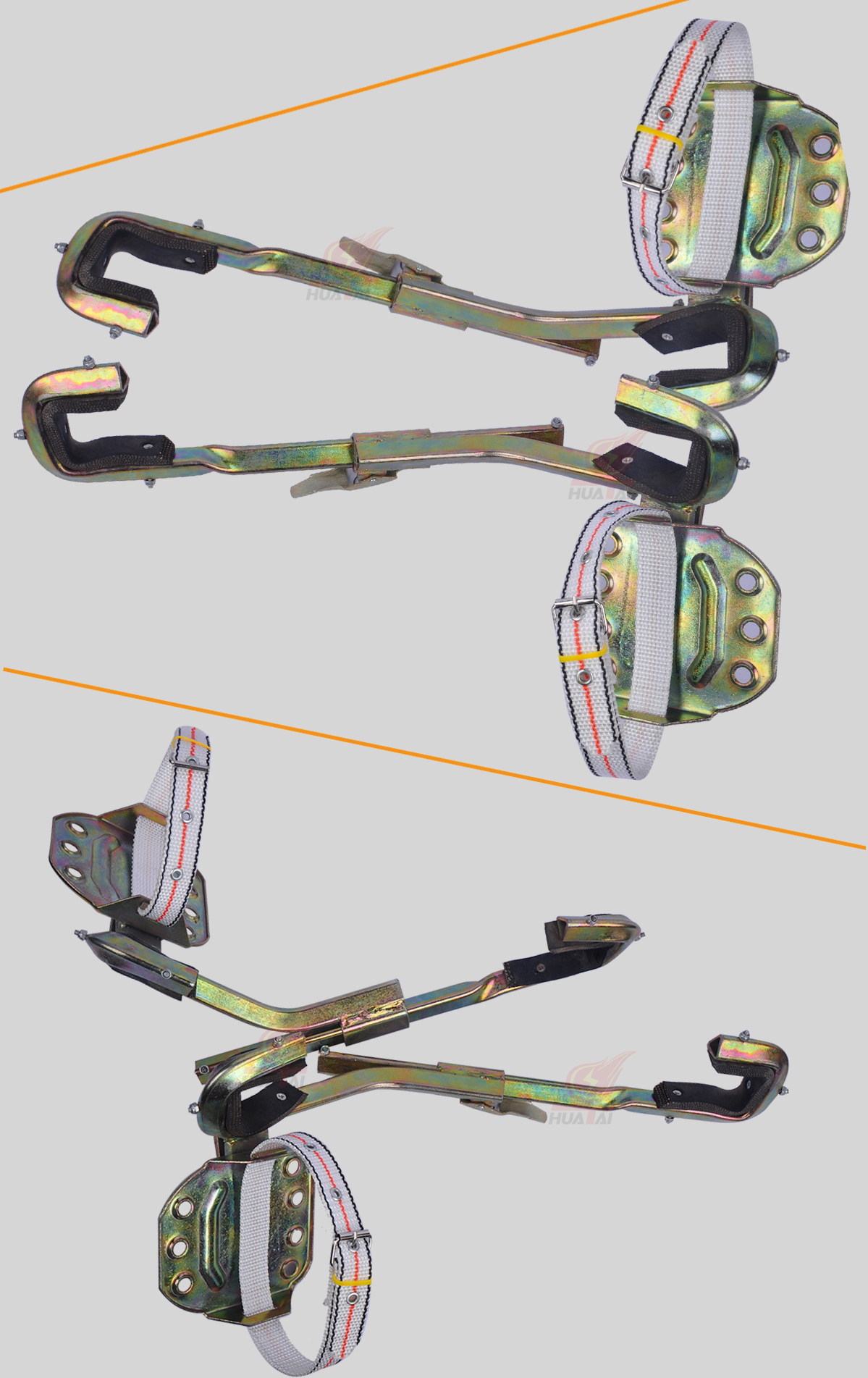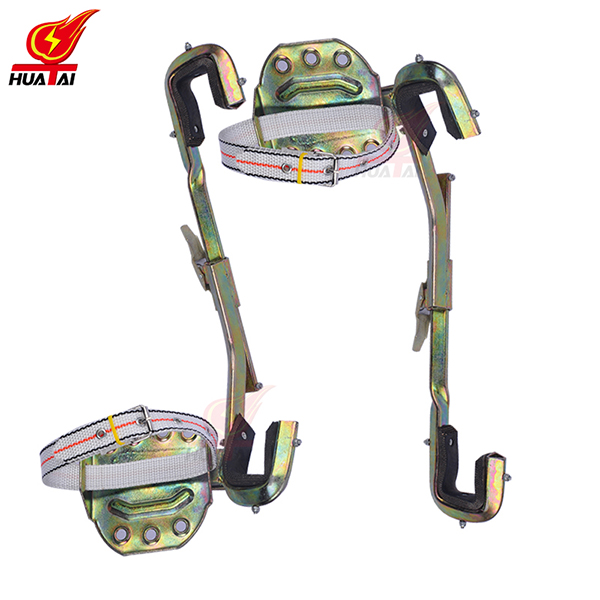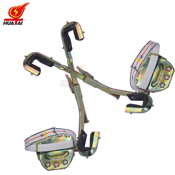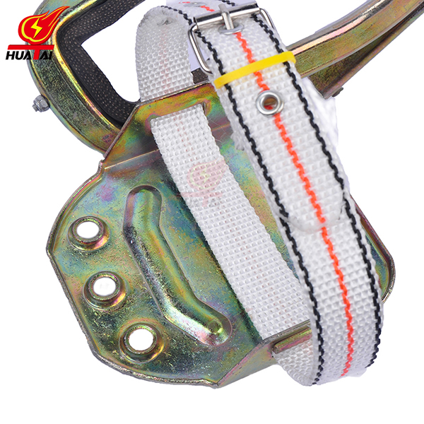 3、正式攀登前應對腳扣作人體沖擊試登,判斷腳扣是否有變形和損傷。登桿前應將腳扣登板的皮帶系牢,登桿過程中應根據桿粗細隨時調整腳扣尺寸。