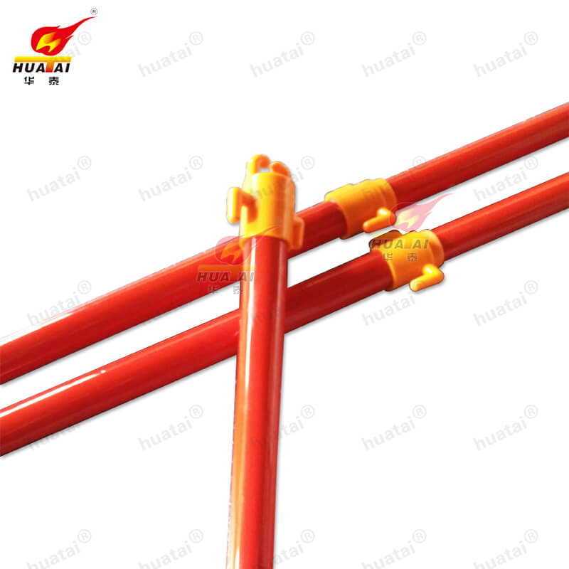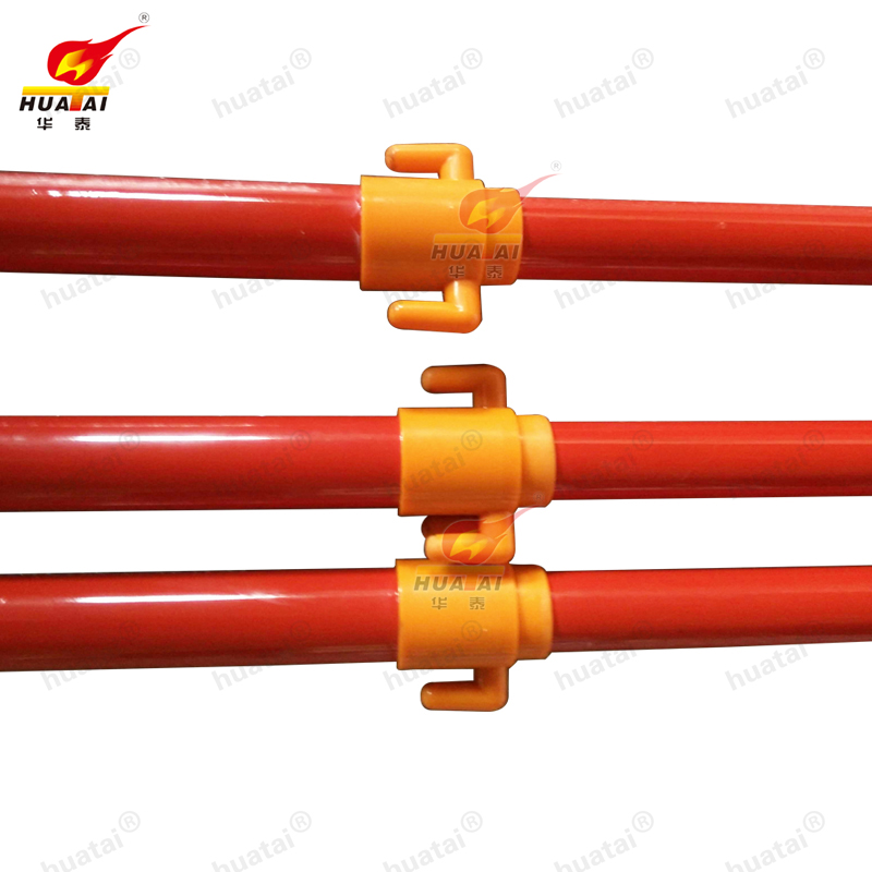 圍欄管使用為三角管外壁,提高材質強度,不易變形。 關節處帶卡扣,按鍵式,不會自動滑落。 此為新型伸縮絕緣地樁,比以往老款做工
